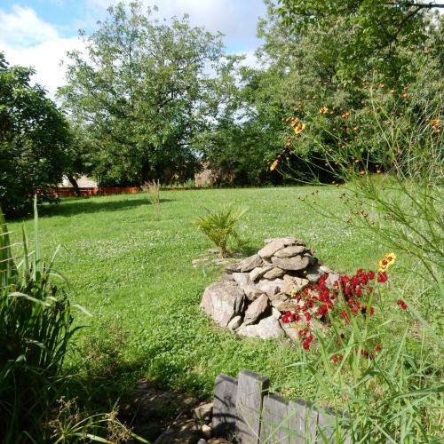 Votre gîte se trouve dans un hameau mais le jardin est sans vis-à-vis. Vous disposerez d'un salon de jardin de qualité, de bains de soleil et d'un barbecue. La partie du jardin qui vous est réservée est vaste et paysagée. L'autre partie est occupée par Albert, notre bélier d'Ouessant, et sa famille.
